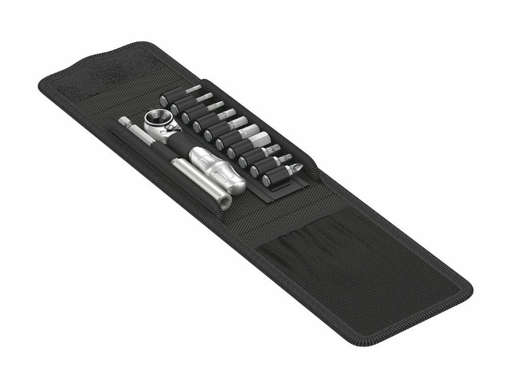 Fahrrad-Werkstätten und Biker aus Leidenschaft lieben das Schrauben am Fahrrad. Der Schraubwerkzeugspezialist Wera bietet mit dem Bicycle Set 1 ein Werkzeugsortiment, das dank der kompakten und designorientierten textilen Falttasche sehr mobil ist und die gängigsten Schraubfälle am Fahrrad lösen kann. Die robuste Tasche enthält die Bit-Ratsche Zyklop Mini 1 sowie 10 Bits mit allen Vorteilen der Wera-Bit-Technologie, speziell auf die gängigsten Fahrradverschraubungen angepasst.